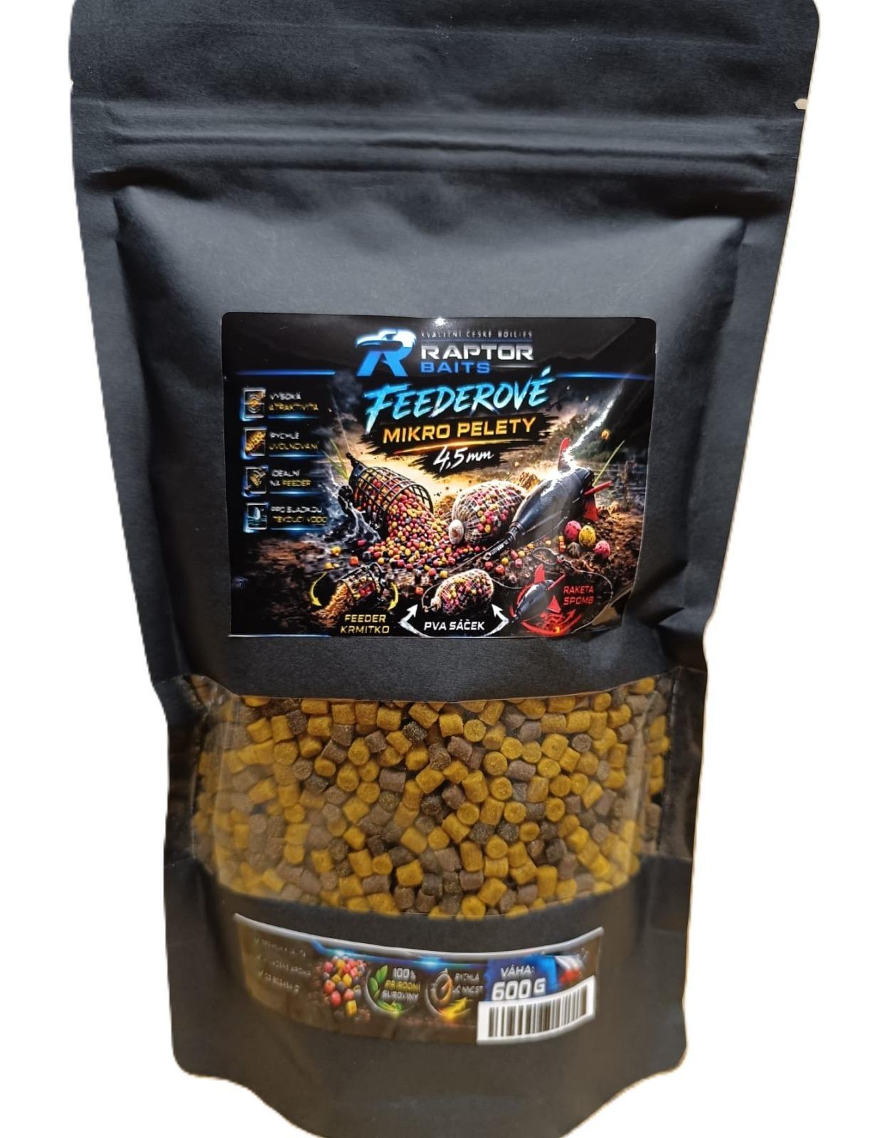 Feederové mikropelety o velikosti 4,5 mm jsou vysoce atraktivní krmné pelety určené pro lov kaprovitých ryb metodou feeder i method feeder. Díky své malé velikosti rychle pracují ve vodě, uvolňují silný potravní signál a vytvářejí lákavý krmný barevný koberec, který spolehlivě přitahuje ryby na krmné místo.